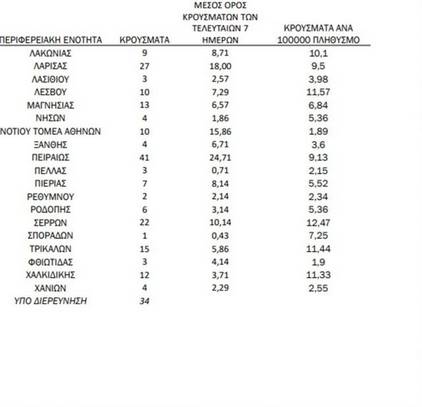 ΆρθραΥγεία 1 κρούσμα σήμερα σήμερα στην Καστοριά – 14 στην Κοζάνη – Κανένα σε Φλώρινα και Γρεβενά 15 Ιανουαρίου 2021 FacebookTwitterPinterestWhatsApp 610 κρούσματα ανακοινώθηκαν σήμερα Παρασκευή 15-1-2021 στην Ελλάδα από τον ΕΟΔΥ. Η γεωγραφική κατανομή των κρουσμάτων έχει ως εξής: Κοινοποιήστε: Mοιραστείτε στο Facebook(Ανοίγει σε νέο παράθυρο) Facebook Share on X(Ανοίγει σε νέο παράθυρο) X