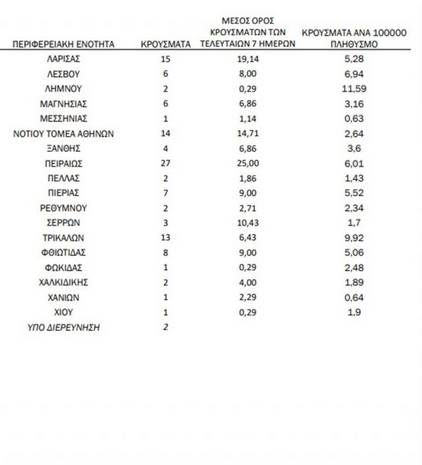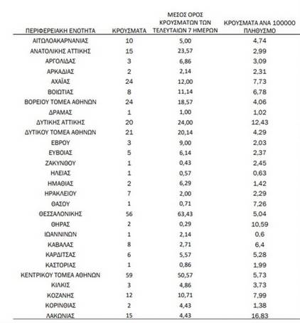 Η γεωγραφική κατανομή των κρουσμάτων έχει ως εξής: