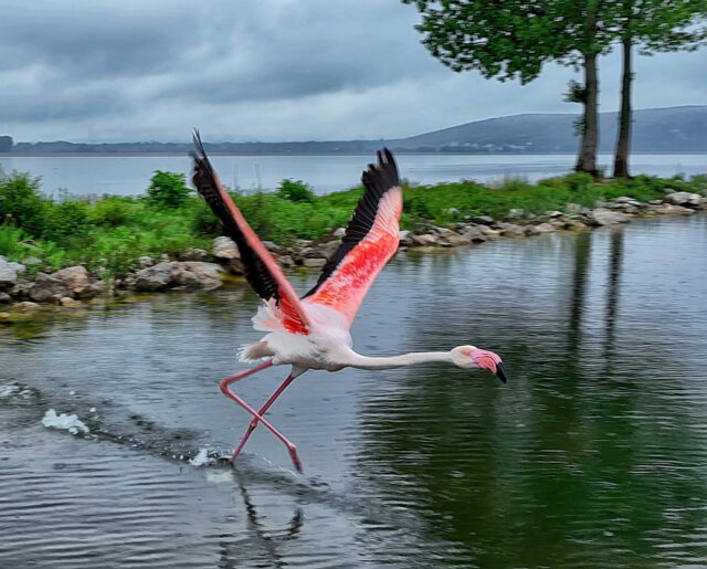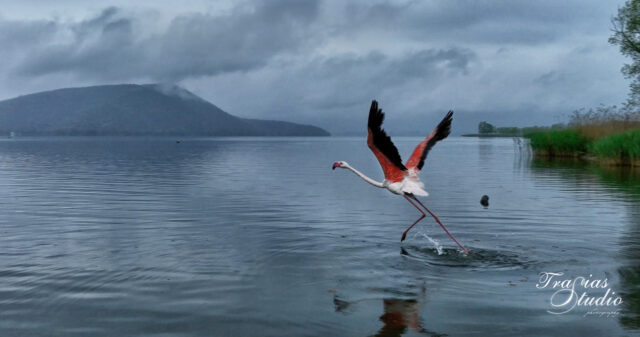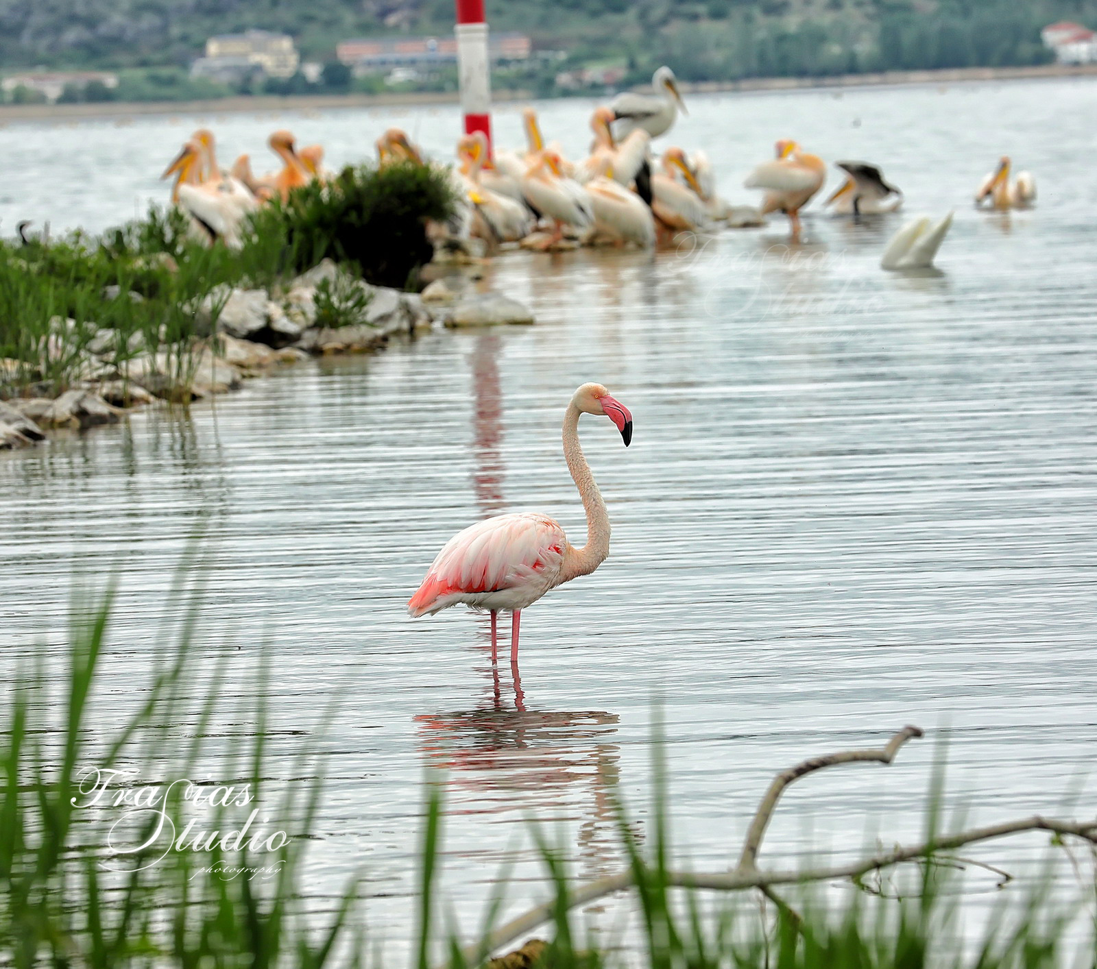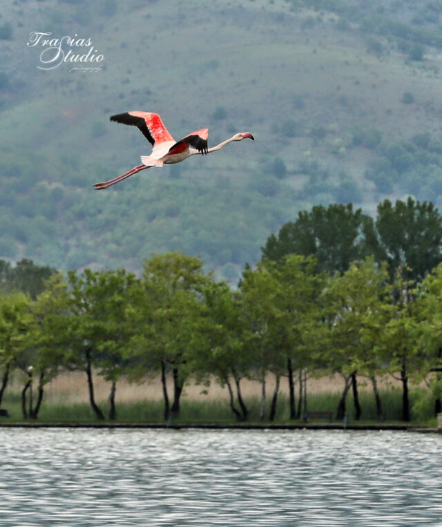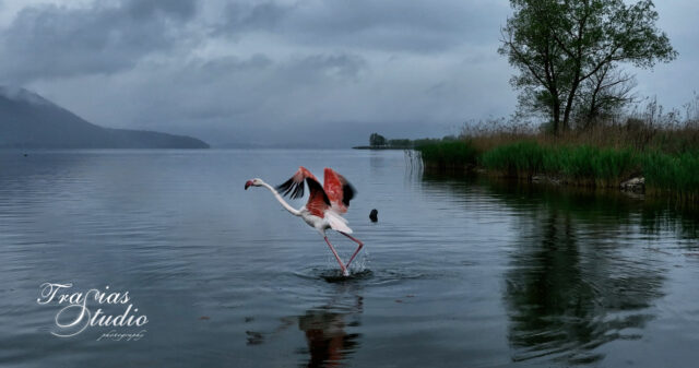 Φλαμίνγκο μια στάση από το ταξίδι της μετανάστευσης τους στην λίμνη της Καστοριάς . studio trasias