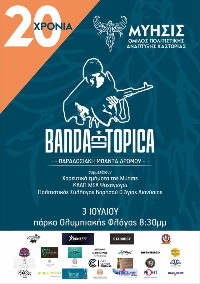 Ο Όμιλος Πολιτιστικής Ανάπτυξης Καστοριάς «Μύησις» γιορτάζει τα 20 χρόνια λειτουργίας του με συναυλία από τους Banda Entopica την Τετάρτη, 3 Ιουλίου, ώρα 20:30 στο Πάρκο Ολυμπιακής Φλόγας.