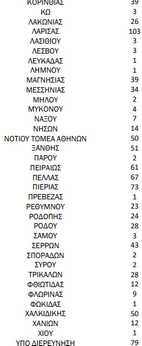 Η γεωγραφική κατανομή των κρουσμάτων έχει ως εξής: