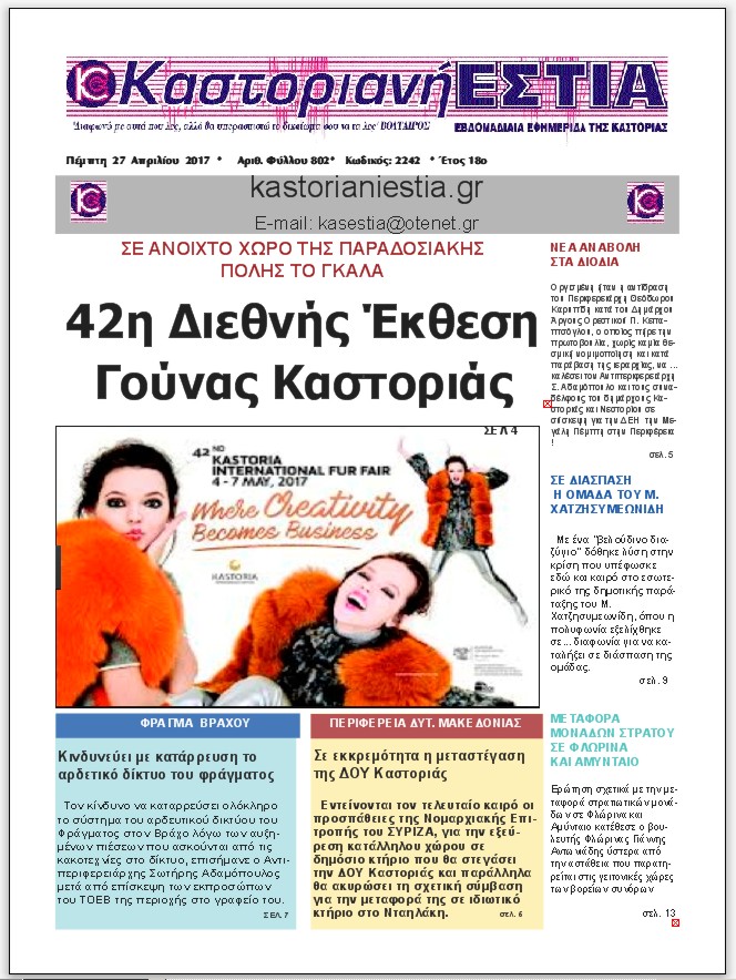 Το πρωτοσέλιδο 27-4-2017