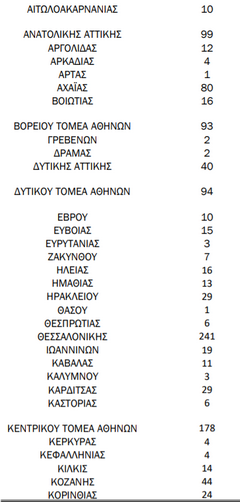 Η γεωγραφική κατανομή των κρουσμάτων έχει ως εξής: