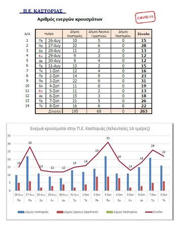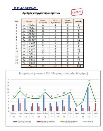 Η Περιφέρεια Δυτικής Μακεδονίας στα πλαίσια της ενημέρωσης για την εξέλιξη των κρουσμάτων κορωνοϊού, δίνει στη δημοσιότητα σχετικό πίνακα στον οποίο αποτυπώνεται ο αριθμός των ενεργών κρουσμάτων κατά Περιφερειακή Ενότητα.