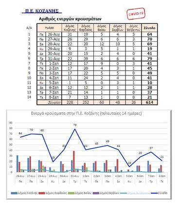 Η Περιφέρεια Δυτικής Μακεδονίας στα πλαίσια της ενημέρωσης για την εξέλιξη των κρουσμάτων κορωνοϊού, δίνει στη δημοσιότητα σχετικό πίνακα στον οποίο αποτυπώνεται ο αριθμός των ενεργών κρουσμάτων κατά Περιφερειακή Ενότητα.