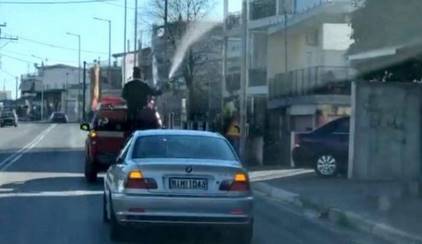 Μέχρι τη στιγμή τουλάχιστον που οι εικόνες από το Λιανοκλάδι Λαμίας είδαν το φως της δημοσιότητας, προβάλλοντας έναν παππά μέσα από υδροφόρο όχημα να ραντίζει με αγιασμό το χωριό!