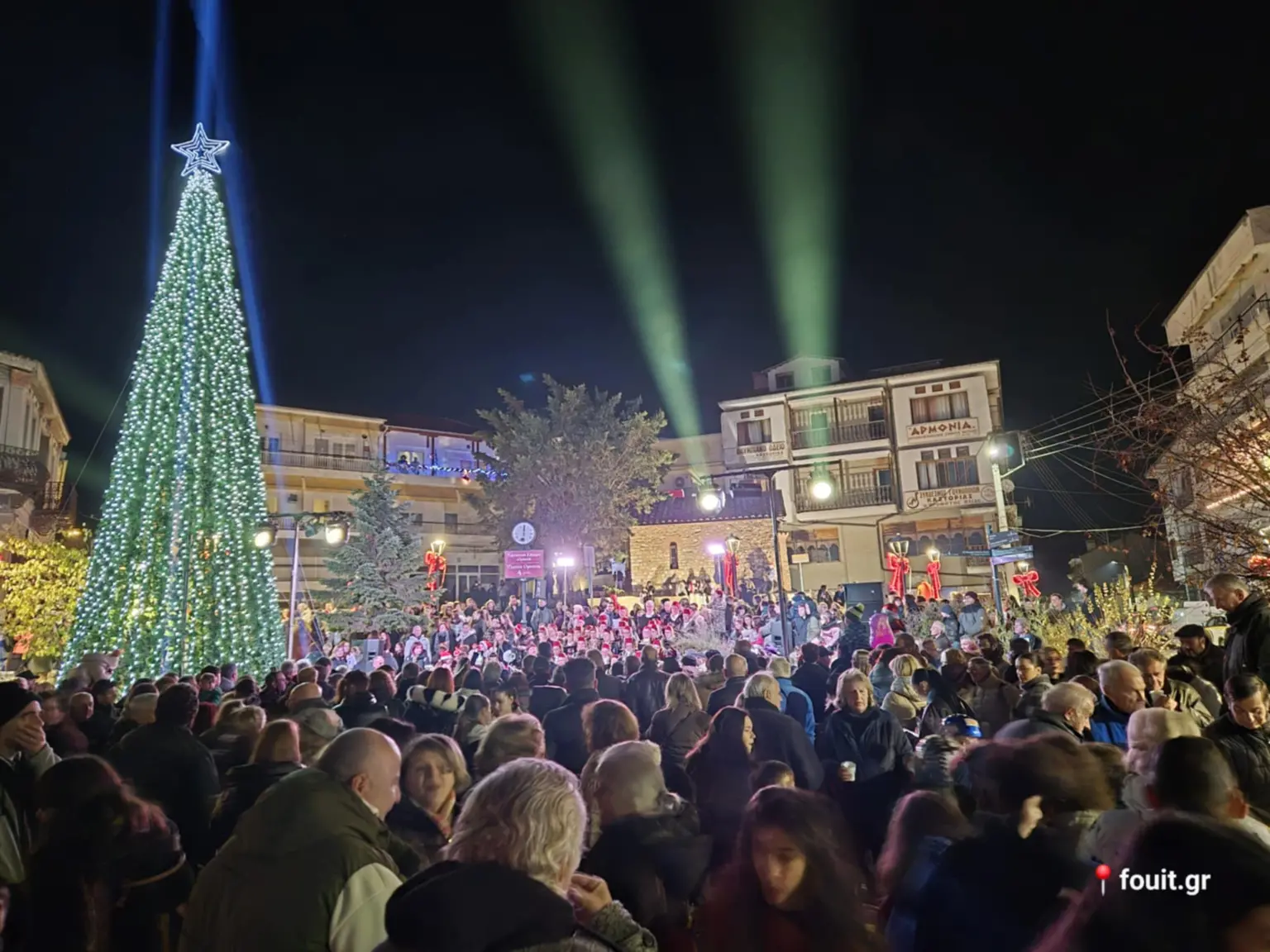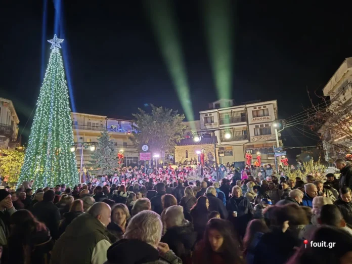 Παρουσία πλήθους κόσμου και των αρχών, η φωταγώγηση του χριστουγεννιάτικου δένδρου στην πλατεία Ομονοίας Καστοριάς
