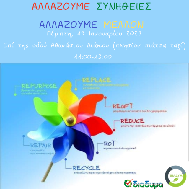 Στον ακόλουθο σύνδεσμο βρείτε χρήσιμες ιδέες πρόληψης και επαναχρησιμοποίησης: https://www.epadym.gr/sustainability?fbclid=PAAaY16_YY17MesZBE2A9KZXP1Mjel9U5t3j4hB2MSs9CtYloojc227IHzaVM