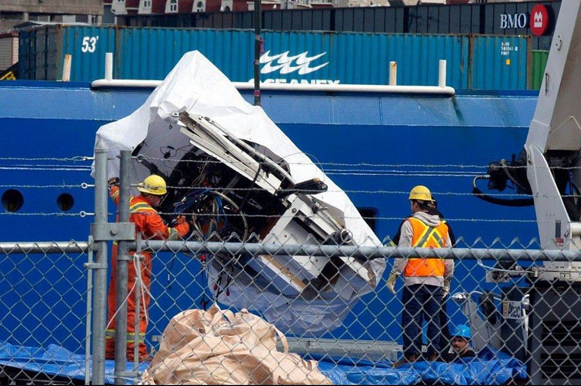 Βίντεο που μεταδόθηκε από το Canadian Broadcast Corp δείχνει κάτι που μοιάζει να είναι το ρύγχος του βαθυσκάφους και άλλα κομμάτια του τυλιγμένα σε μια λευκή λινάτσα να αναδύονται από τη θάλασσα με τη βοήθεια γερανού και να τοποθετούνται στο κατάστρωμα του πλοίου Horizon Arctic.