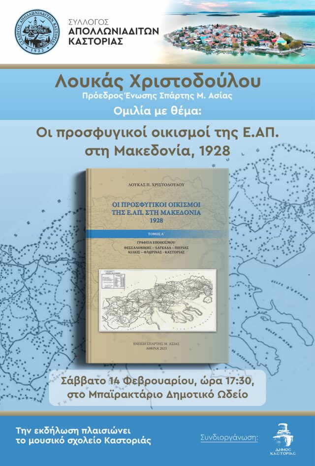 Ο ΣΥΛΛΟΓΟΣ ΑΠΟΛΛΩΝΙΑΔΙΤΏΝ ΚΑΣΤΟΡΙΑΣ παρουσιάζει τη βραβευμένη από την Ακαδημία Αθηνών τριλογία “Οι προσφυγικοί οικισμοί της Ε.Α.Π. στη Μακεδονία”