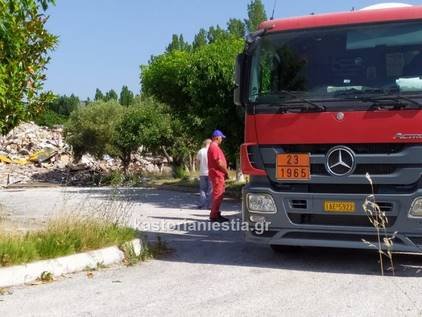 Βυτιοφόρο άλλης εταιρείας αερίου από αυτήν που προμήθευε το Ξενοδοχείο Τσάμης, (σ.σ. η ίδια αρνήθηκε να κάνει την άντληση) βρίσκεται από το πρωί στον χώρο της έκρηξης και επιχειρεί να εκκενώσει το περιεχόμενο των δεξαμενών που βγήκαν αλώβητες από την τρομακτική εκείνη έκρηξη.