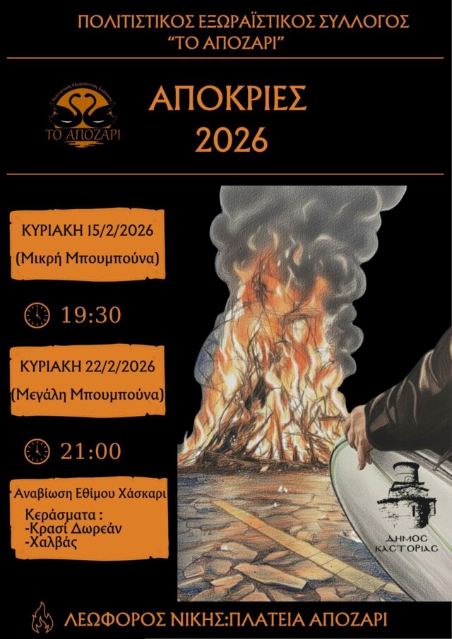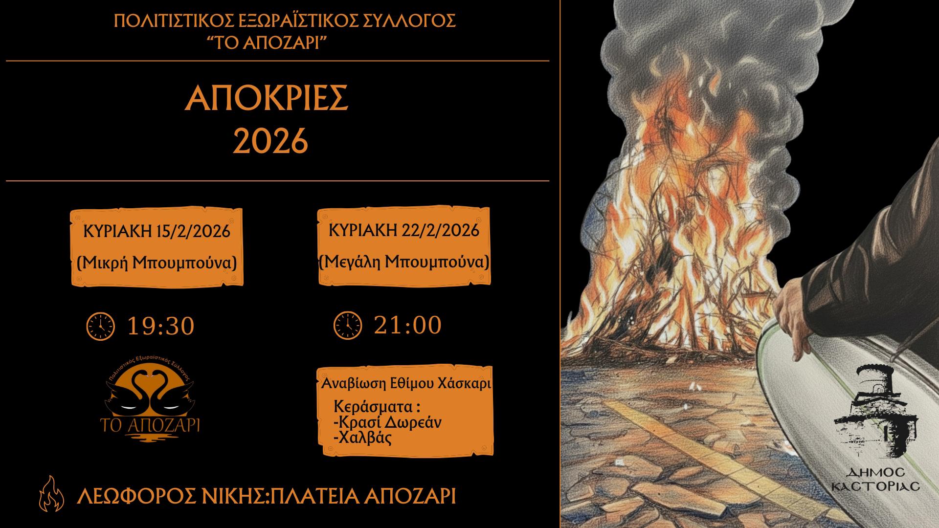 Ο Πολιτιστικός Εξωραϊστικός Σύλλογος «Το Απόζαρι» σας προσκαλεί να ζήσουμε μαζί τα αποκριάτικα έθιμα της Καστορίας!