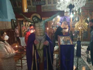 Με ευλάβεια και θρησκευτική κατάνυξη πραγματοποιήθηκε η Ακολουθία των Παθών στον Ιερό Ναό Κοιμήσεως της Θεοτόκου στον Απόσκεπο Καστοριάς