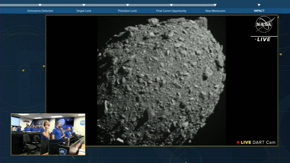 Η πρόσκρουση επιβεβαιώθηκε: διαστημόπλοιο της NASA, της υπηρεσίας διαστήματος των ΗΠΑ, έπεσε εσκεμμένα πάνω σε αστεροειδή με σκοπό να μεταβληθεί η πορεία του με τη δύναμη της κινητικής ενέργειας, κατά τη διάρκεια αποστολής άνευ προηγουμένου με σκοπό να η ανθρωπότητα να μάθει πώς θα προστατευτεί από δυνητική μελλοντική υπαρξιακή απειλή γι’ αυτή.