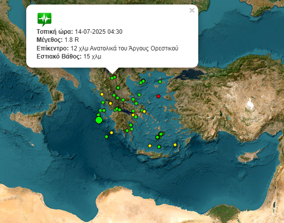Ο σεισμός είχε επίκεντρο12 χιλιόμετρα ανατολικά του Άργους Ορεστικού και εστιακό βάθος 15 χιλιόμετρα