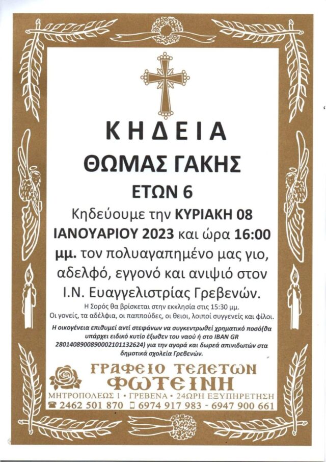Αύριο Κυριακή η κηδεία του 6χρονου Θωμά στα Γρεβενά