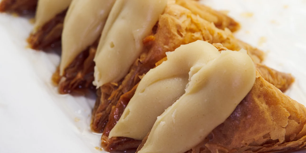 Τα τρίγωνα από φύλλο ψήνονται μέχρι να ροδίσουν, βυθίζονται σε κρύο σιρόπι που αποτελείται από ζάχαρη και νερό και στη συνέχεια γεμίζονται με την κρύα κρέμα. Τα τρίγωνα συχνά γαρνίρονται με ψιλοκομμένους ξηρούς καρπούς πριν από την κατανάλωσή τους», περιγράφει το Taste Atlas.
