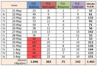 Ενεργά κρούσματα Π.Ε. ΚΑΣΤΟΡΙΑΣ Ενεργά κρούσματα Π.Ε. ΚΟΖΑΝΗΣ Ενεργά κρούσματα Π.Ε. ΓΡΕΒΕΝΩΝ Ενεργά κρούσματα Π.Ε. ΦΛΩΡΙΝΑΣ