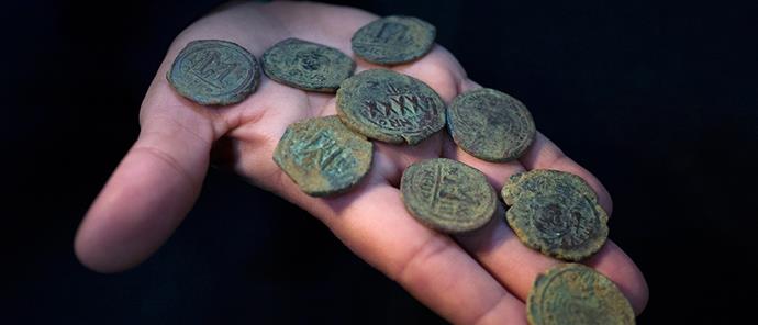 Η Υπηρεσία παρουσίασε επίσης 9 νομίσματα της βυζαντινής εποχής που βρέθηκαν πρόσφατα στο σημείο όπου βρισκόταν ένα κτίριο που στέγαζε Χριστιανούς προσκυνητές, κοντά στην Ιερουσαλήμ. Τα νομίσματα αυτά, του 4ου-7ου μ.Χ. αιώνα, βρίσκονταν μέσα σε έναν τοίχο, σαν ο ιδιοκτήτης τους να προσπάθησε να τα κρύψει. Σύμφωνα με την αρχαιολόγο Ανέτ Λαντ-Νάγκαρ, η ανακάλυψη αυτή είναι μια απόδειξη της περσικής εισβολής που οδήγησε τελικά στην εγκατάλειψη της συγκεκριμένης περιοχής από τους Χριστιανούς.
