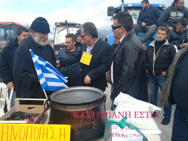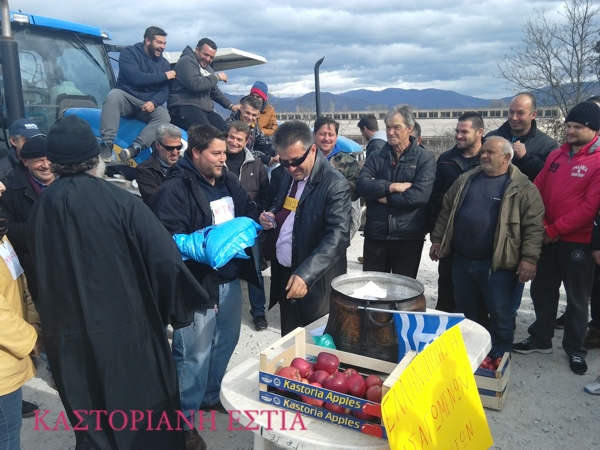 Σε συμβολική κατάληψη του χώρου μπροστά από το τελωνείο προχώρησαν σήμερα το μεσημέρι οι αγρότες της Καστοριάς όπου με … παπά και με κουμπάρο έπαιξαν ένα αυτοσχέδιο σκετς διακωμωδώντας τις παράνομες ελληνοποιήσεις προϊόντων από τρίτες χώρες.