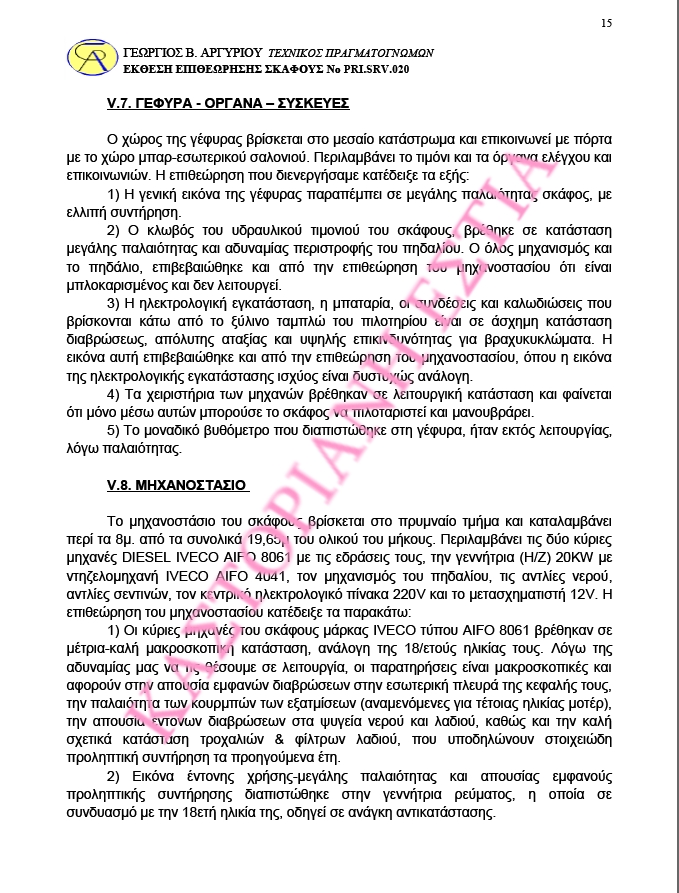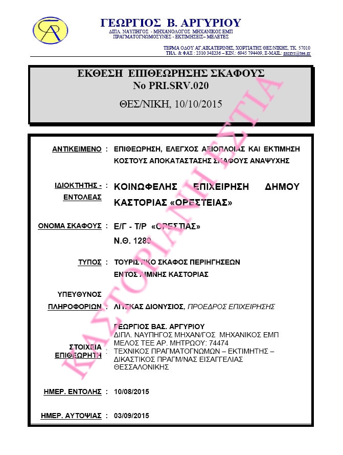 έτσι και αλλιώς ηλικίας του επιθεωρούμενου σκάφους ΟΡΕΣΤΙΑΣ. Σε κάθε περίπτωση,
