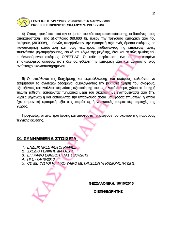 πλέον την τρέχουσα εμπορική αξία του σκάφους (30.000€), πιθανώς υπερβαίνουν την