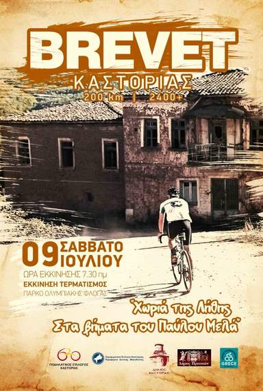 Ο Ποδηλατικός Σύλλογος Καστοριάς ΄΄620΄΄ διοργανώνει το Σάββατο 9 Ιουλίου το BREVET Καστοριάς την καθιερωμένη ποδηλατική πρόκληση 200χλμ. Αρωγοί και υποστηρικτές σε αυτή την προσπάθειά μας είναι η Περιφερειακή Ενότητα Καστοριάς, ο Δ.Καστοριάς και ο Δ.Πρεσπών.