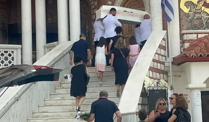 Η σορός της 13χρονης μεταφέρθηκε σε λευκό φέρετρο στον Ιερό Ναό του Αγίου Γεωργίου στα Νέα Μουδανιά. Τραγικές φιγούρες ήταν οι γονείς της, οι οποίοι ήταν μαζί της στην παραλία όταν συνέβη η τραγωδία και το κοριτσάκι τους ξεψύχησε μπροστά στα μάτια τους.