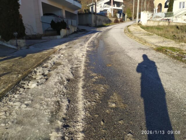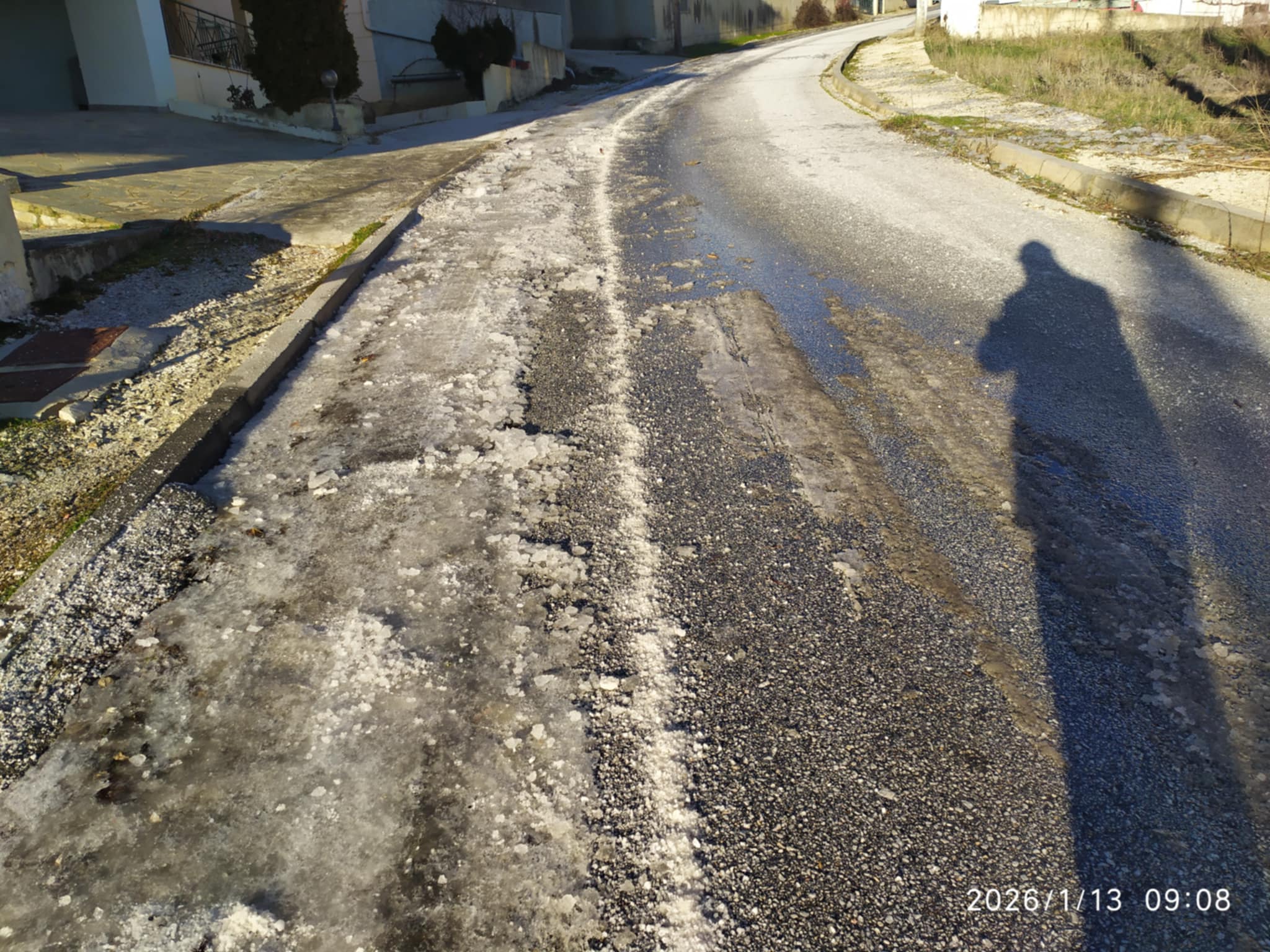 Ενδεικτικό της επικινδυνότητας του δρόμου για πεζούς και οχήματα, είναι το γεγονός ότι σήμερα το πρωί επισκέφθηκαν το συγκεκριμένο σημείο ο αρμόδιος αντιδήμαρχος κ. Διονύσης Λίτσκας και μαζί μ’ έναν υπάλληλο του Δήμου προσπάθησαν να διαλύσουν με φτυάρια τον πάγο από το οδόστρωμα, αλλά φευ! γρήγορα απογοητεύθηκαν και αποχώρησαν άπρακτοι!
