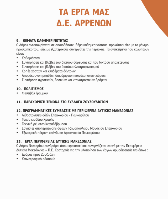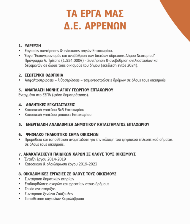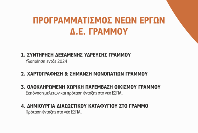 οι καρτελές με τα έργα και τον προγραμματισμό μας στις Δ.Ε Αρρένων & Γράμμου.