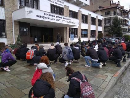 Ο Αντιπεριφερειάρχης Καστοριάς Δημήτρης Σαββόπουλος υποδέχτηκε σήμερα Πέμπτη 11 Φεβρουαρίου 2021 στην είσοδο του Διοικητηρίου, την Ανεξάρτητη Νεολαία Καστοριάς και Καλλιτέχνες της πόλης, οι οποίοι πραγματοποιούσαν παράσταση διαμαρτυρίας για την ενσωμάτωση της τροποποιημένης Ευρωπαϊκής Οδηγίας για την παροχή υπηρεσιών στον οπτικοακουστικό τομέα που ψηφίζεται σήμερα στη Βουλή και η οποία, τονίζουν πως θα επιφέρει λογοκρισία και διώξεις στον κλάδο.