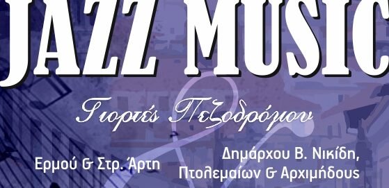 Γιορτές Πεζόδρομου με Jazzmusic στον πεζόδρομο Στρ. Άρτη& Ερμού, καθώς και στον πεζόδρομο Δημάρχου Β.Νικίδη – Πτολεμαίων &Αρχιμήδους,