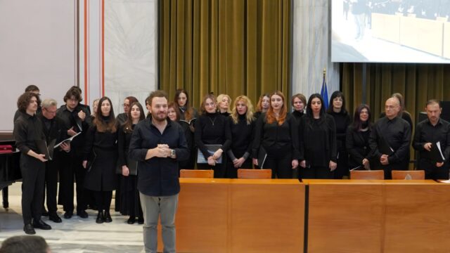 Ακολούθησε σύντομο μουσικό πρόγραμμα από τη χορωδία του Ιδρύματος υπό τη διεύθυνση του Αρχιμουσικού Μιχάλη Οικονόμου.
