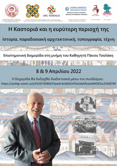 Ο Τομέας Αρχαιολογίας του Τμήματος Ιστορίας και Αρχαιολογίας του Αριστοτελείου Πανεπιστημίου Θεσσαλονίκης, το Ινστιτούτο Παραδοσιακής Αρχιτεκτονικής και Πολιτιστικής Κληρονομιάς του ΠΕΚ «ΤΗΜΕΝΟΣ» του Πανεπιστημίου Δυτικής Μακεδονίας και η Εφορεία Αρχαιοτήτων Καστοριάς οργανώνουν από κοινού επιστημονική διημερίδα με θέμα «Η Καστοριά και η ευρύτερη περιοχή της: Ιστορία, παραδοσιακή αρχιτεκτονική, τοπογραφία, τέχνη», αφιερωμένη στη μνήμη του Καθηγητή του Τμήματος Αρχιτεκτόνων Μηχανικών της Πολυτεχνικής Σχολής του Αριστοτελείου Πανεπιστημίου Θεσσαλονίκης Πάνου Τσολάκη.