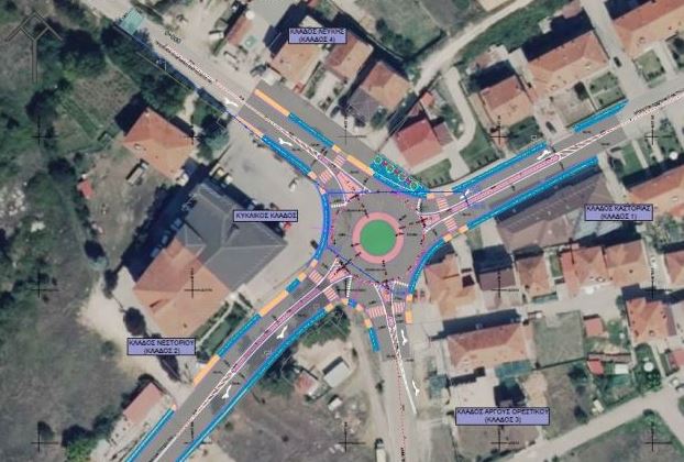 Οι εργασίες περιλαμβάνουν, μεταξύ άλλων, την κατασκευή της κεντρικής νησίδας, νέες ασφαλτοστρώσεις, διαμόρφωση πεζοδρομίων με πρόβλεψη για άτομα με προβλήματα όρασης, έργα αποστράγγισης, καθώς και την πλήρη οριζόντια και κατακόρυφη σήμανση και τον ηλεκτροφωτισμό του κόμβου. Παράλληλα προβλέπεται και η αισθητική αναβάθμιση της περιοχής.