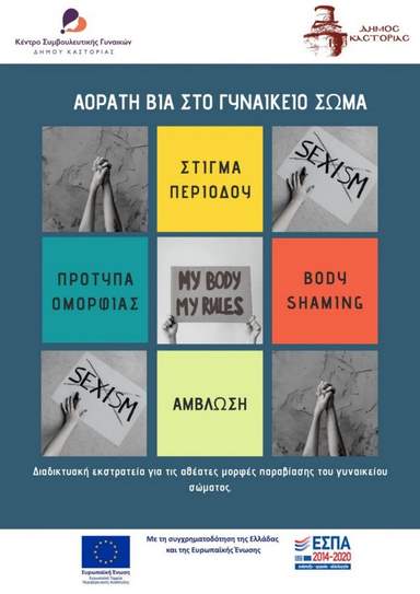 Στο πλαίσιο των δράσεων ενημέρωσης και ευαισθητοποίησης για την έμφυλη βία, το Κέντρο Συμβουλευτικής Γυναικών του Δήμου Καστοριάς διενεργεί διαδικτυακή δράση, η οποία θα υλοποιηθεί κατά την διάρκεια του Φλεβάρη, με θέμα: “Οι αθέατες μορφές παραβίασης του γυναικείου σώματος“. Πιο συγκεκριμένα, η δράση αφορά στις παρακάτω ενότητες: