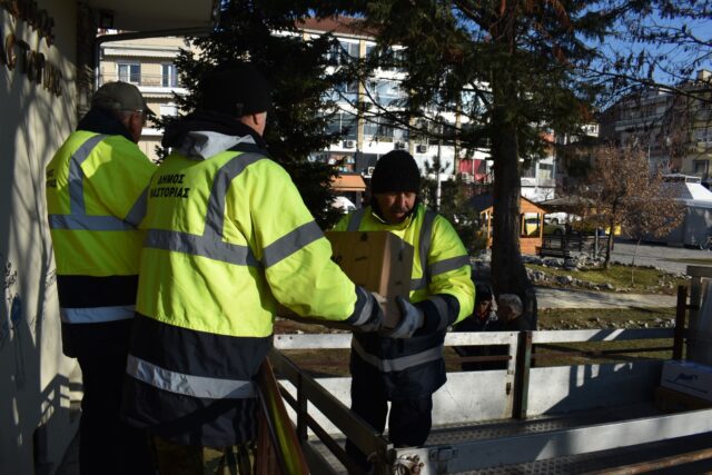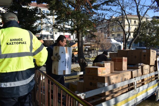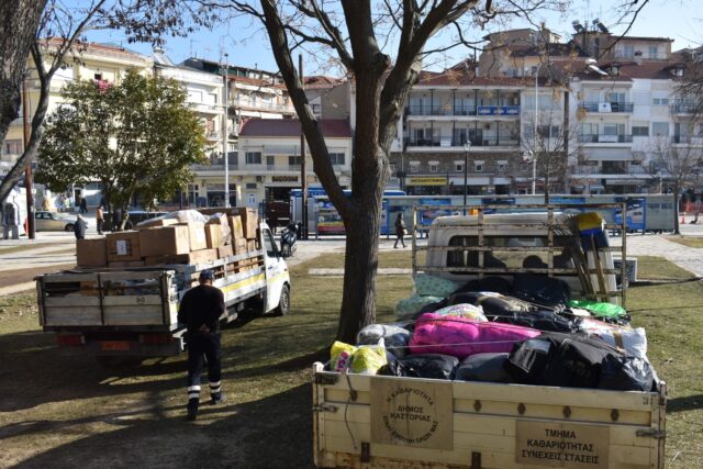 Τα είδη που συγκεντρώθηκαν συσκευάστηκαν και φορτώθηκαν από τους εργαζόμενους των Αντιδημαρχιών Πρόνοιας, Καθαριότητας και Πρασίνου του Δήμου Καστοριάς, προκειμένου να αναχωρήσουν για το σημείο συγκέντρωσης που έχει οριστεί από την ΠΕΔ Δυτικής Μακεδονίας στην Λευκόβρυση Κοζάνης, με τελικό προορισμό τις σεισμόπληκτες περιοχές.
