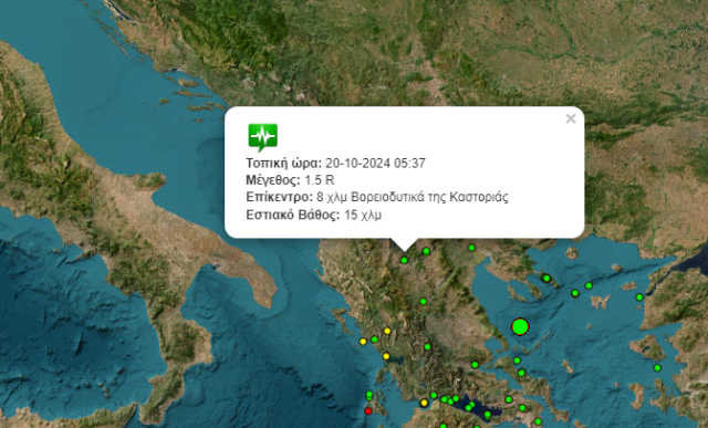 Δύο μικρής έντασης σεισμικές δονήσεις σημειώθηκαν την νύχτα της Κυριακής 20 Οκτωβρίου στην Καστοριά. Η πρώτη στις 02:36 και ήταν 1,6 ρίχτερ και η δεύτερη στις 05:37 και ήταν 1,5 ρίχτερ.