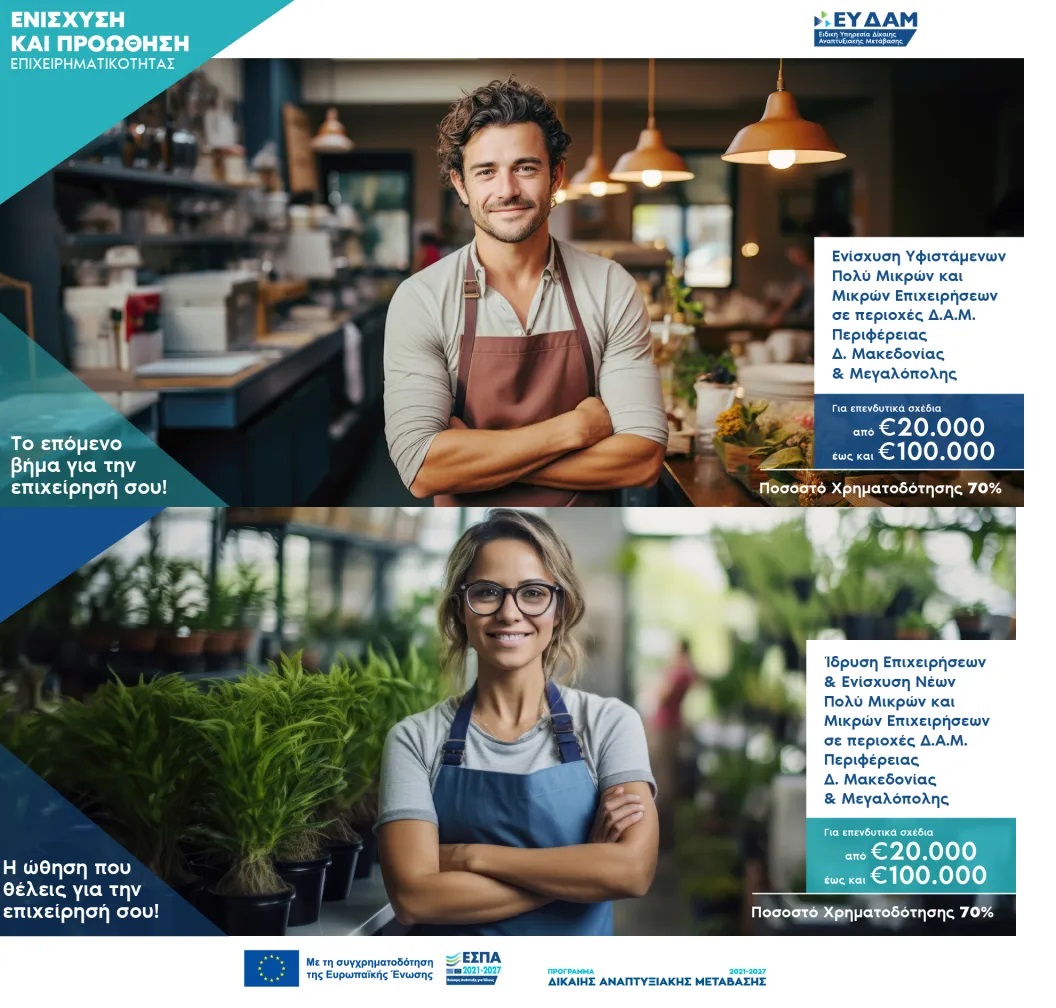 «Ενίσχυση Υφιστάμενων Πολύ Μικρών και Μικρών Επιχειρήσεων σε περιοχές Εδαφικών Σχεδίων Δίκαιης Αναπτυξιακής Μετάβασης Περιφέρειας Δυτικής Μακεδονίας & Μεγαλόπολης»