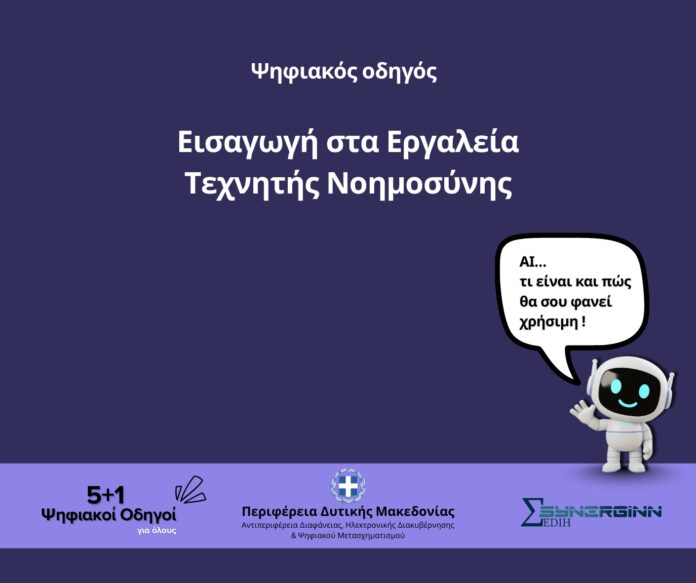 Συνεχίζοντας τη σειρά «5+1 Ψηφιακοί Οδηγοί για Όλους», η Περιφέρεια Δυτικής Μακεδονίας παρουσιάζει τον 4ο θεματικό ψηφιακό οδηγό με τίτλο «Εισαγωγή στα Εργαλεία Τεχνητής Νοημοσύνης».