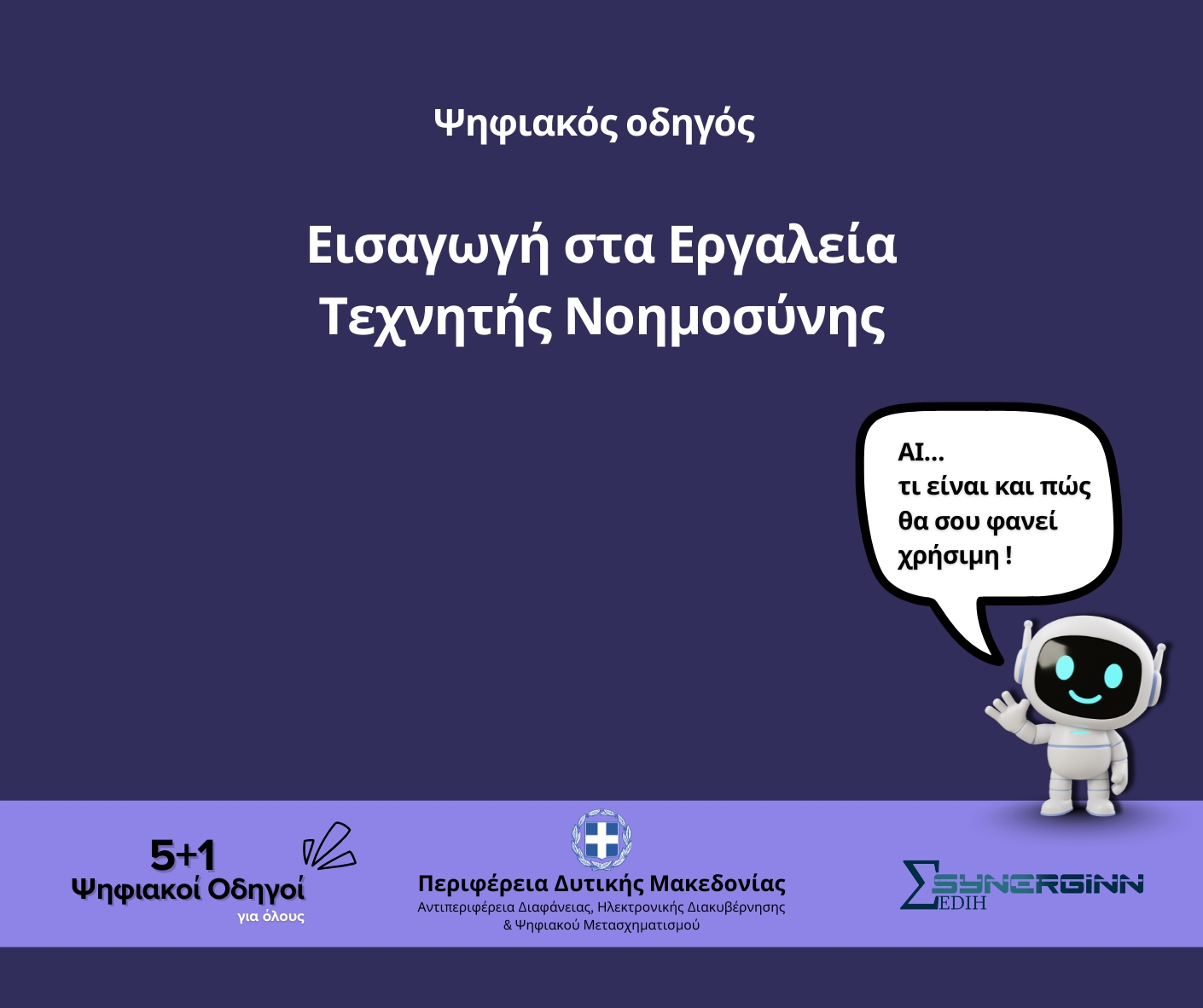 Μετά τη θετική ανταπόκριση που είχαν οι προηγούμενοι οδηγοί της σειράς, ο νέος οδηγός έρχεται να καλύψει ένα από τα πιο σύγχρονα και ταχέως αναπτυσσόμενα πεδία της ψηφιακής εποχής: την Τεχνητή Νοημοσύνη (ΤΝ) και τα εργαλεία που ήδη επηρεάζουν την καθημερινότητα, την εκπαίδευση και την εργασία.