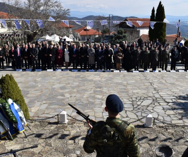 Οι εκδηλώσεις έληξαν με κατάθεση στεφάνων και ανάκρουση του Εθνικού Ύμνου από τη Στρατιωτική Μουσική της 9ης Μ/Π Ταξιαρχίας Πεζικού.