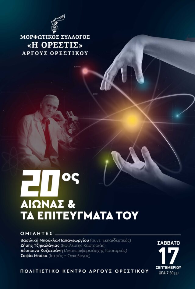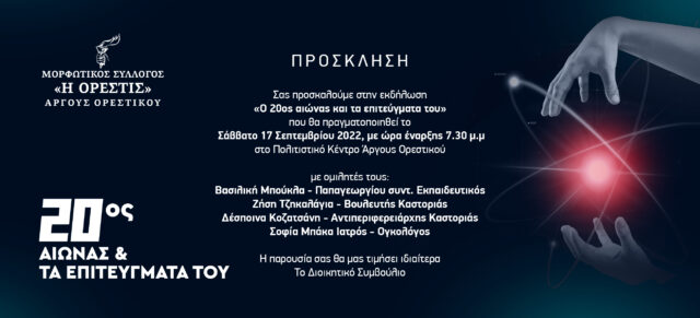 Σας προσκαλούμε στην εκδήλωση «Ο 20ος αιώνας και τα επιτεύγματα του», που θα πραγματοποιηθεί το Σάββατο 17 Σεπτεμβρίου 2022, με ώρα έναρξης 7.30 μ.μ,