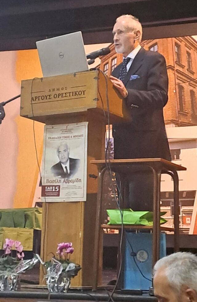 Στην εκδήλωσή Τιμής και Μνήμης για τον αείμνηστο Βασίλη Αβραμίδη,που έλαβε χώρα το Σάββατο 15 Μαρτίου 2025, στο Πολιτιστικό Κέντρο Άργους Ορεστικού, παρέστησαν ο Αιδεσιμολογιώτατος Πατέρας Λεωνίδας, ο Αντιπεριφερειάρχης Καστοριάς κ. Δημήτρης Σαββόπουλος, ο Δήμαρχος Άργους Ορεστικού κ. Παναγιώτης Κεπαπτσόγλου, η Αρχηγός της Αντιπολίτευση κ. Κάλλι Κυριακίδη, οι Αντιδήμαρχοι κ. Αλεξάνδρα Βραγγάλα, και Ζήσης Τόλκος, η σύζυγος του αειμνήστου Προέδρου κ. Φρειδερίκη Αβραμίδη, η σύζυγος του μεγάλου ευεργέτη της Ορεστίδος Δαμιανού Δούμα, κ. Αγγέλα Δούμα, ο Δημοτικός Σύμβουλος κ. Διαμαντής Αδάμ, η Πρόεδρος της Φιλοπτώχου κ Βασιλική Μπούκλα, και μέλη των Δ.Σ των συλλόγων της Κυζίκου, Φιλοπτώχου και Ευξείνου Λέσχης.