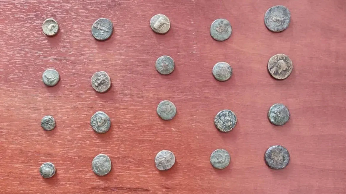 Κατά την διάρκεια της έρευνας που έκαναν στο σπίτι του το μεσημέρι της Μ. Δευτέρας, βρήκαν 50 αρχαία νομίσματα τα οποία εξετάστηκαν από κλιμάκιο αρχαιολόγων της Εφορείας Αρχαιοτήτων Ιωαννίνων που συμμετείχαν στην επιχείρηση. Οι ειδικοί εκτίμησαν ότι εμπίπτουν στις προστατευτικές διατάξεις του νόμου, καθώς χρονολογούνται στους Κλασικούς, Ελληνιστικούς και Ρωμαϊκούς χρόνους κι έτσι τα νομίσματα κατασχέθηκαν και τους παραδόθηκαν για περαιτέρω εξέταση, ώστε να εξακριβωθεί και η προέλευσή τους.