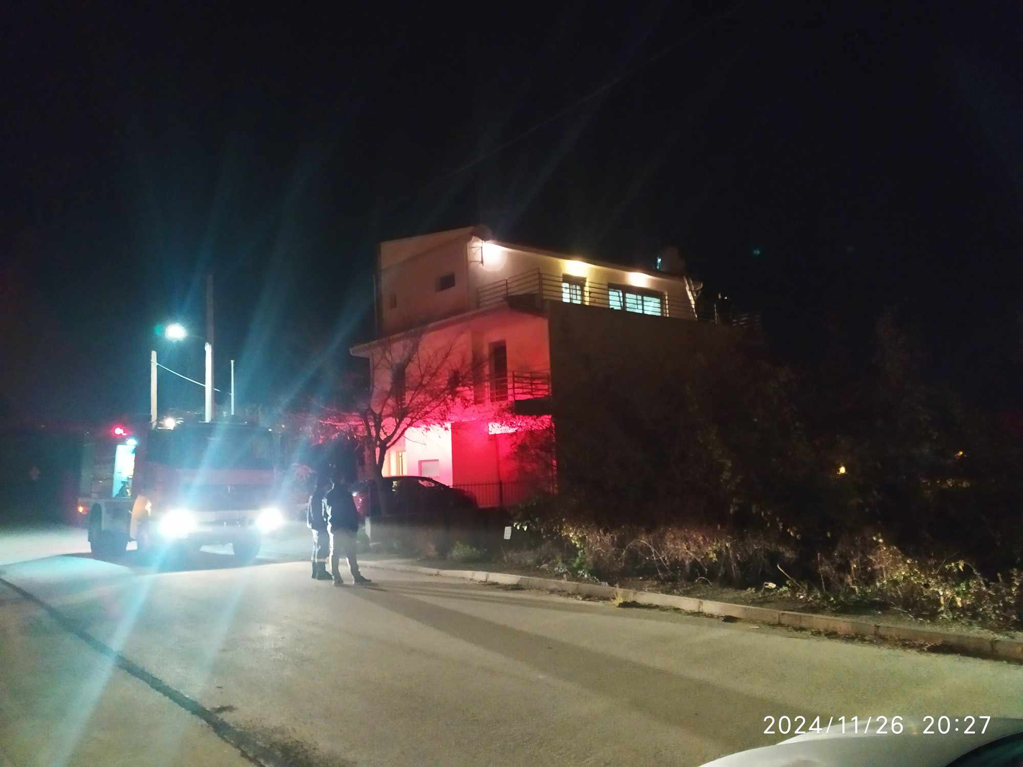 Αυτή την στιγμή η πυροσβεστική απομονώνει την σκεπή για να μην εξαπλωθεί η φωτιά στο υπόλοιπο σπίτι.