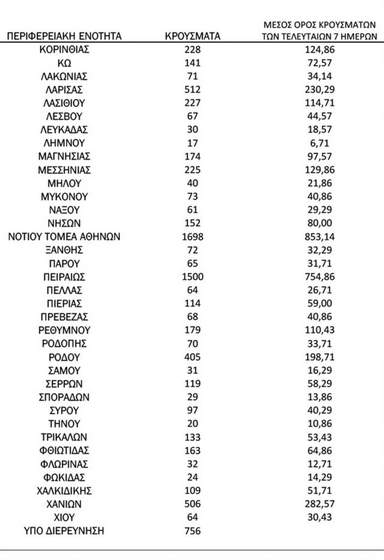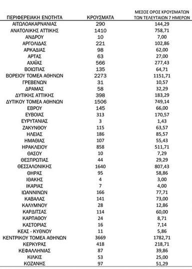 Η γεωγραφική κατανομή των κρουσμάτων έχει ως εξής:
