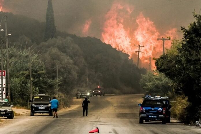 Η φωτιά καίει ανεξέλεγκτα σε τρεις εστίες γύρω από την πόλη — στα Φλογεραίικα, το Πλατάνι και τα Δεμένικα — με τους πυροσβέστες να δίνουν σκληρή μάχη για τον περιορισμό της. Οι φλόγες έχουν προκαλέσει συνεχείς εκκενώσεις οικισμών και σημαντικές ζημιές σε κατοικίες και επιχειρήσεις.