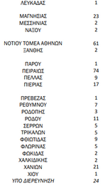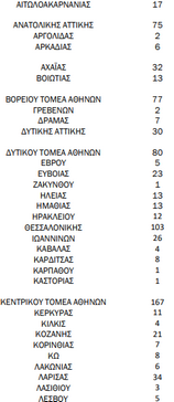 Η γεωγραφική κατανομή των κρουσμάτων έχει ως εξής: