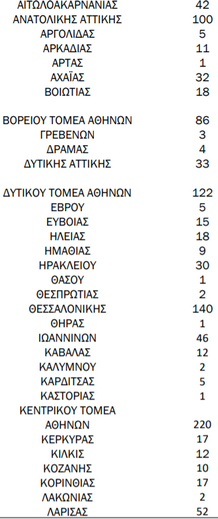 Η γεωγραφική κατανομή των κρουσμάτων έχει ως εξής: